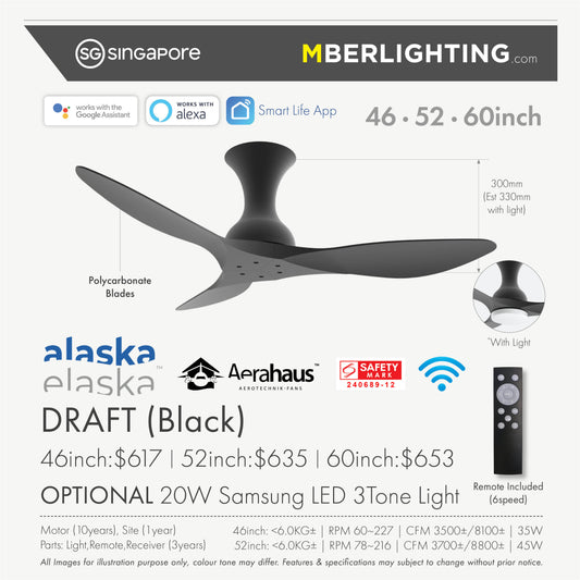 DRAFT 3-Blades Hugger Ceiling Fan BLACK