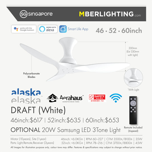 DRAFT 3-Blades Hugger Ceiling Fan WHITE