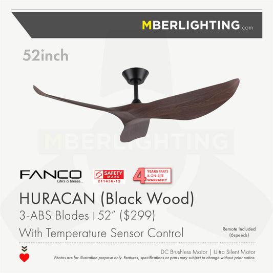 HYSON 3-Blades Hugger Ceiling Fan DARK WOOD