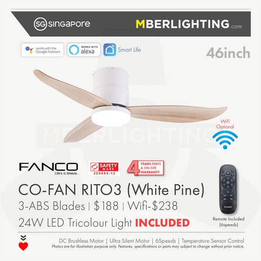 RITO3 3-Blades Hugger Ceiling Fan WHITE PINE