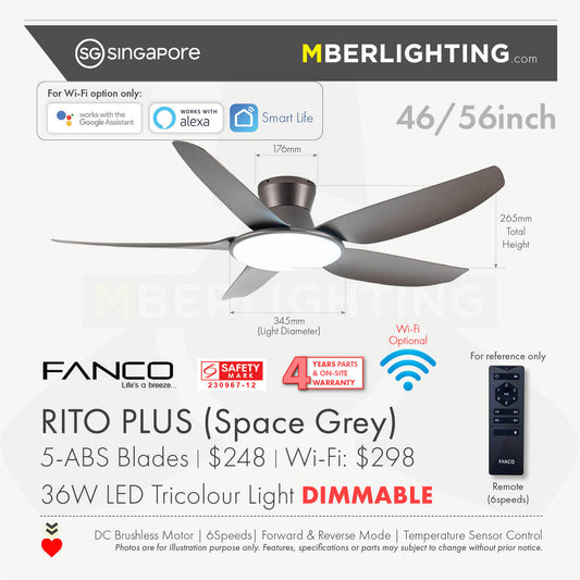 RITO PLUS 5-Blades Hugger Ceiling Fan SPACE GREY
