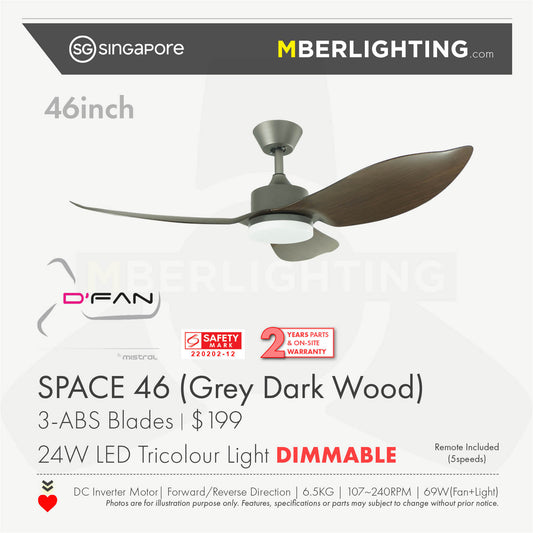 SPACE 3-Blades Drop Rod Ceiling Fan DARK WOOD
