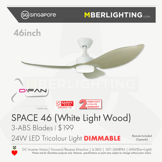 SPACE 3-Blades Drop Rod Ceiling Fan LIGHT WOOD