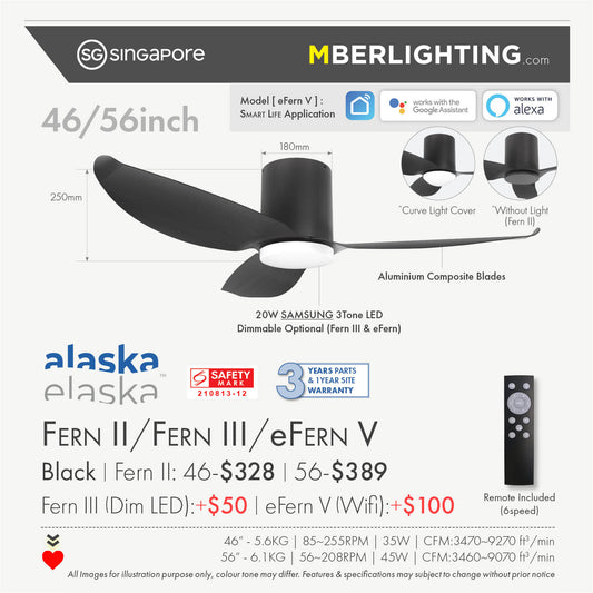 FERN 3-Blades Hugger Ceiling Fan BLACK