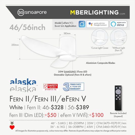 FERN 3-Blades Hugger Ceiling Fan WHITE