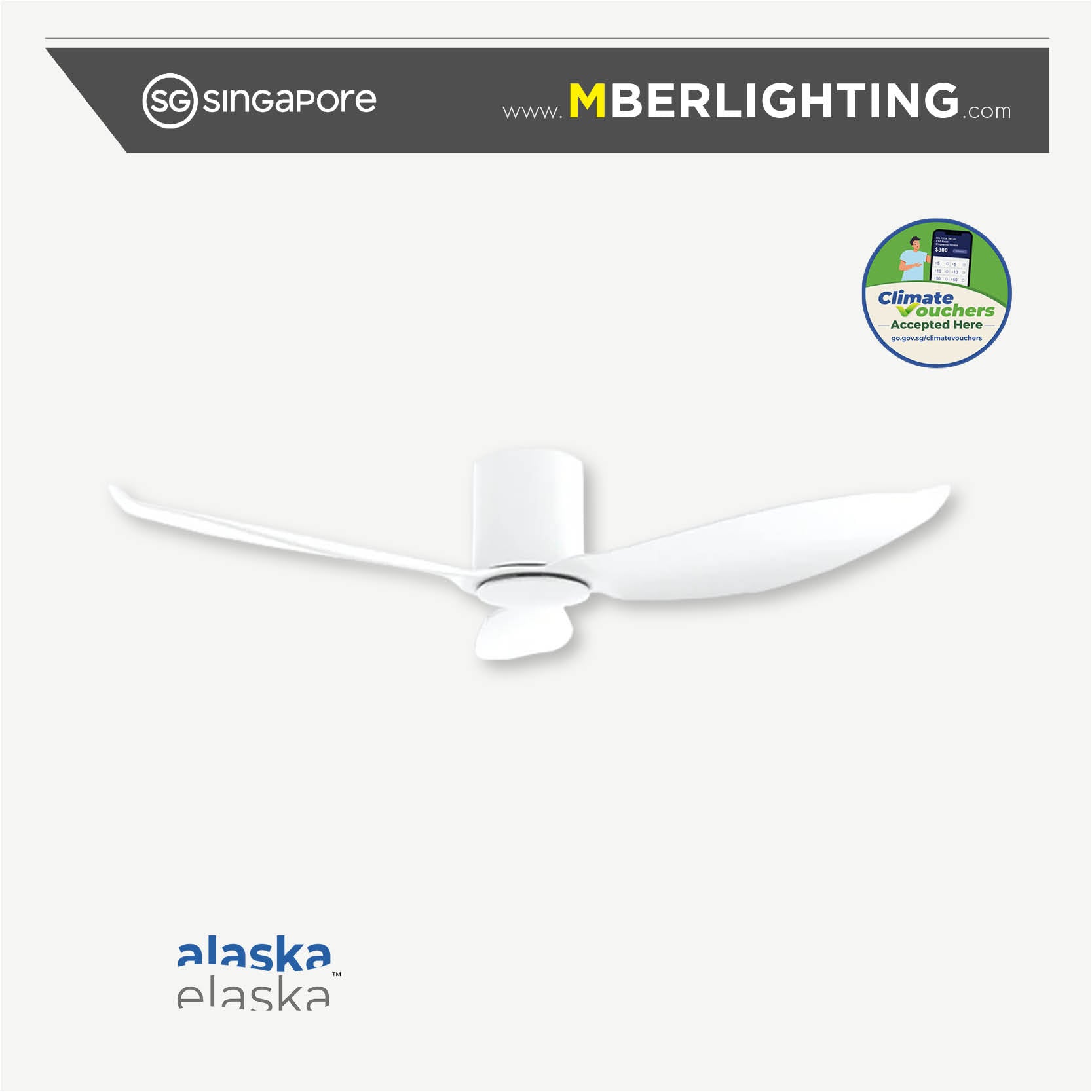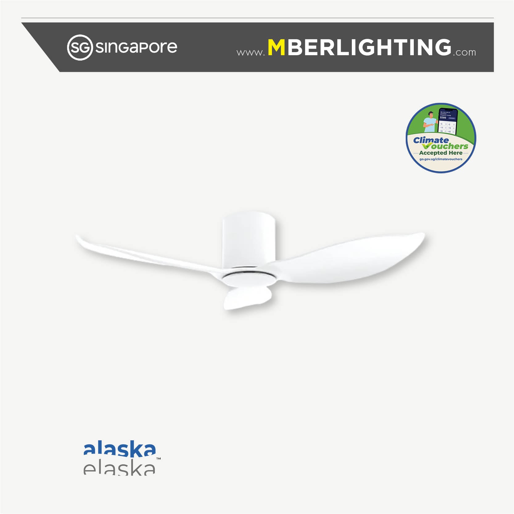 HYSON 3-Blades Hugger Ceiling Fan WHITE