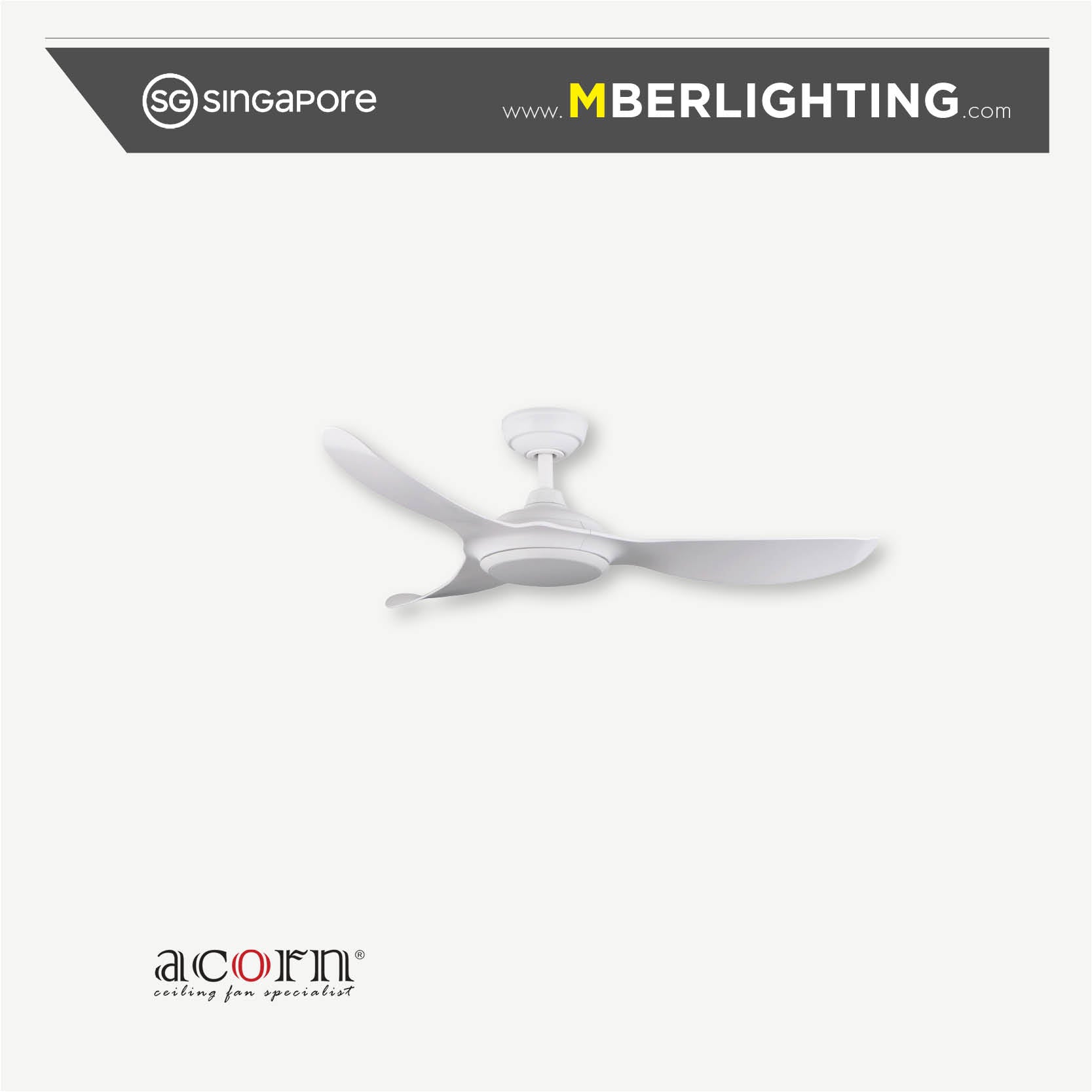 VOGA DC368 3-Blades Drop-Rod Ceiling Fan WHITE